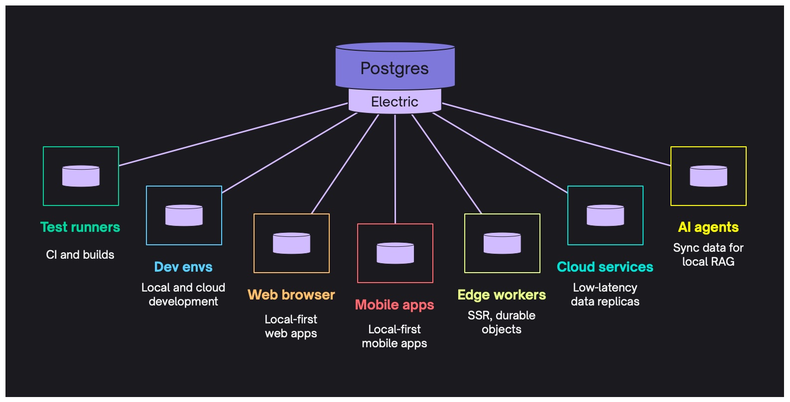 It can be used for a wide range of use cases, syncing data into apps, workers, services, agents and environments. These include but are not limited to local-first software development.