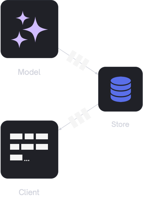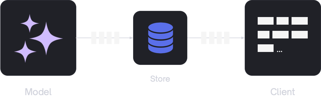 So far, when discussing streaming, we've focused on tokens. But models are just as adept at returning structured data. This is another major advantage of streaming through a store. That store can be a structured database.
