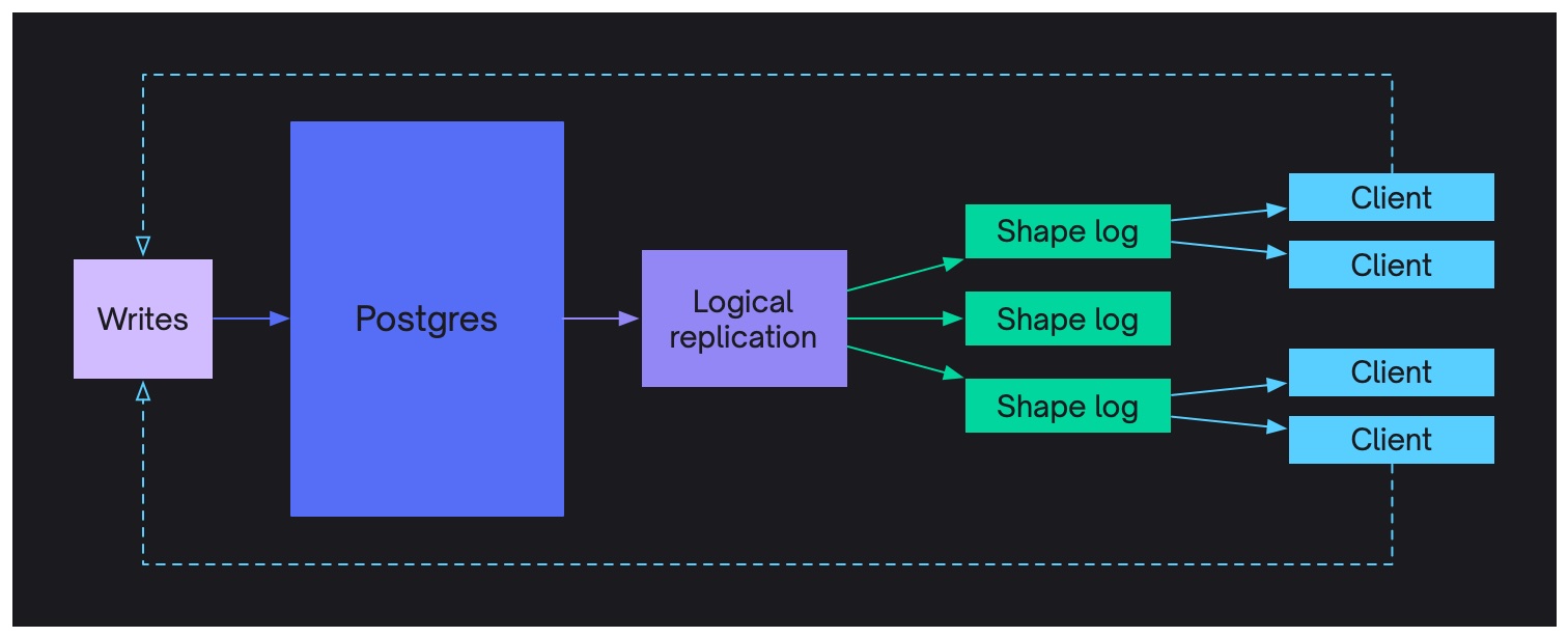 The Shape Log is similar conceptually to the logical replication stream from Postgres. Except that instead of getting all the database operations, you're getting the ones that affect the data in your Shape. It's then the responsibility of the client to consume the log and materialize out the current value of the shape.